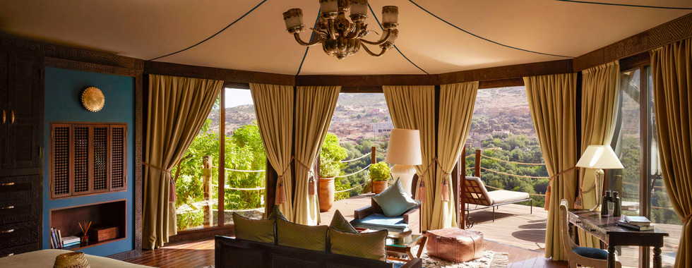 Kasbah Tamadot offers a range of accommodations, from atmospheric rooms in the old kasbah to more luxurious options in the form of glamorous Berber tents and six private riads with three-bedroom suites and pools. Each space is thoughtfully designed to provide a unique experience, with modern comforts paired with the kasbah’s traditional Moroccan elements.